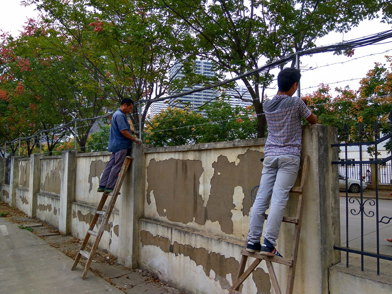2、德利園區(qū)圍墻護(hù)欄低矮很容易翻過(guò),為防盜竊、防破壞,我司將圍墻立柱加高80cm,并用帶刺鐵絲網(wǎng)圍合,使不法分子無(wú)法翻過(guò),確保園區(qū)安全。