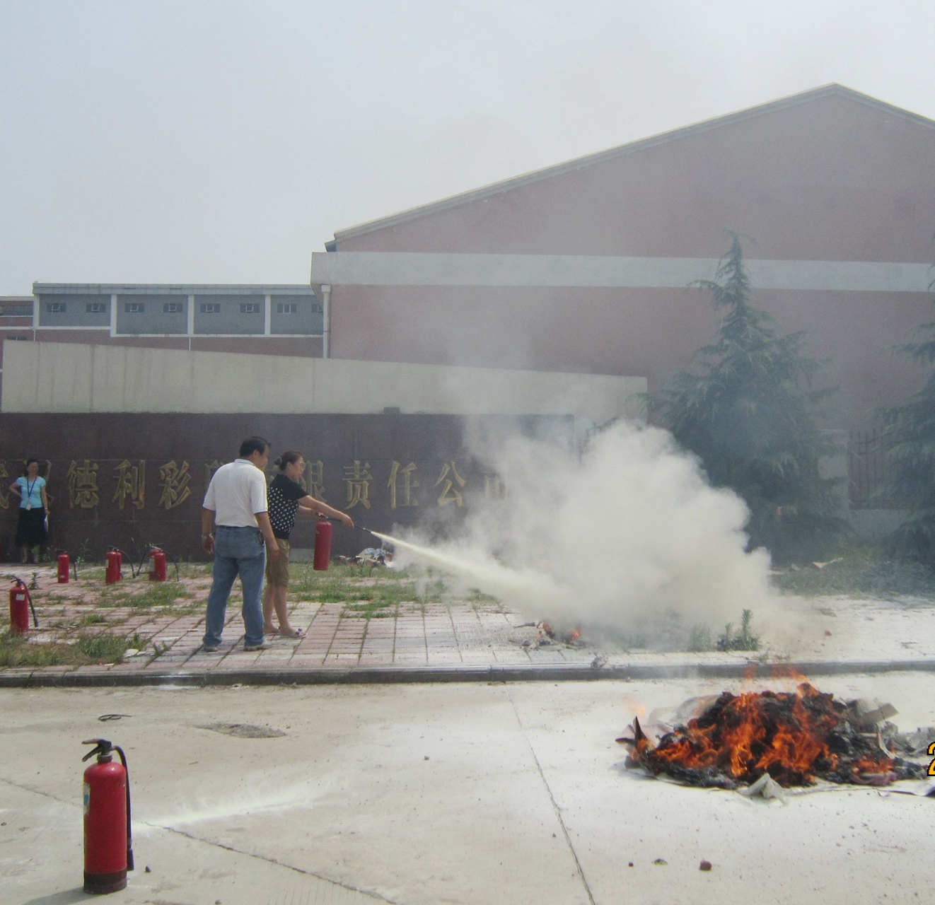 6月25日上午,橋建集團(tuán)安技部董華部長等領(lǐng)導(dǎo)親臨我公司培訓(xùn)現(xiàn)場,予以我公司員工極大鼓舞,在操作技能培訓(xùn)與演練過程中,湖北金泰消防器材公司鄔工程師就我國常用的消防器材種類、消防器材性能和日常消防器材及滅火器的操作方法進(jìn)行了祥盡、細(xì)致的講解。參加培訓(xùn)人員逐一動手,按照滅火器材使用的“一搖、二拔、三壓、四噴”動作要領(lǐng),親自操作并對模擬的火災(zāi)現(xiàn)場進(jìn)行撲滅演練。整個演練過程雖消耗了二十余個干粉滅火器,但卻使全體學(xué)員克服了對初級火災(zāi)、火險的恐懼心理,增強了科學(xué)撲滅初級火險的勇氣,提高了應(yīng)急能力,特別是掌握了常用滅火器的使用方法和操作常識及技能,為公司安全生產(chǎn)和消防安全提供了保障。