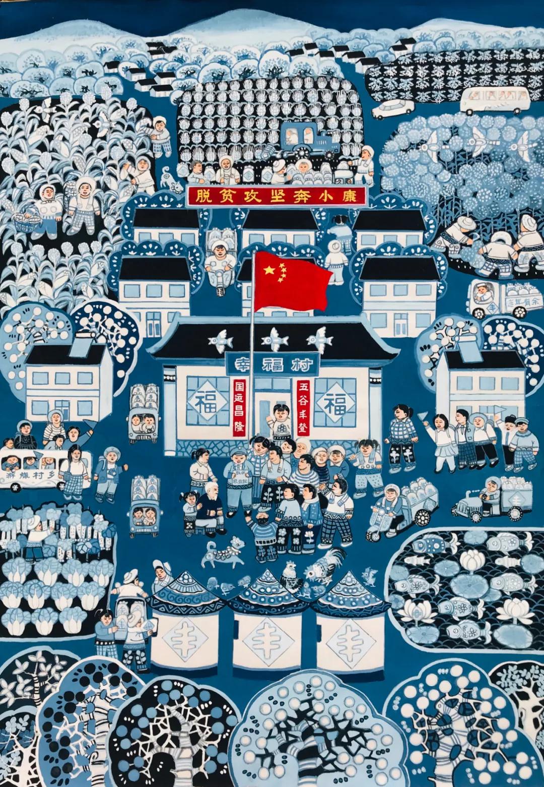 走進青州農民畫院,幸福感撲面而來。一幅幅構圖飽滿的農民畫,濃墨重彩地表現(xiàn)了熱火朝天的勞動現(xiàn)場、碩果累累的豐收景象、富足恬適的農家日常,生動形象地還原了新時代齊魯大地的鄉(xiāng)村生活。