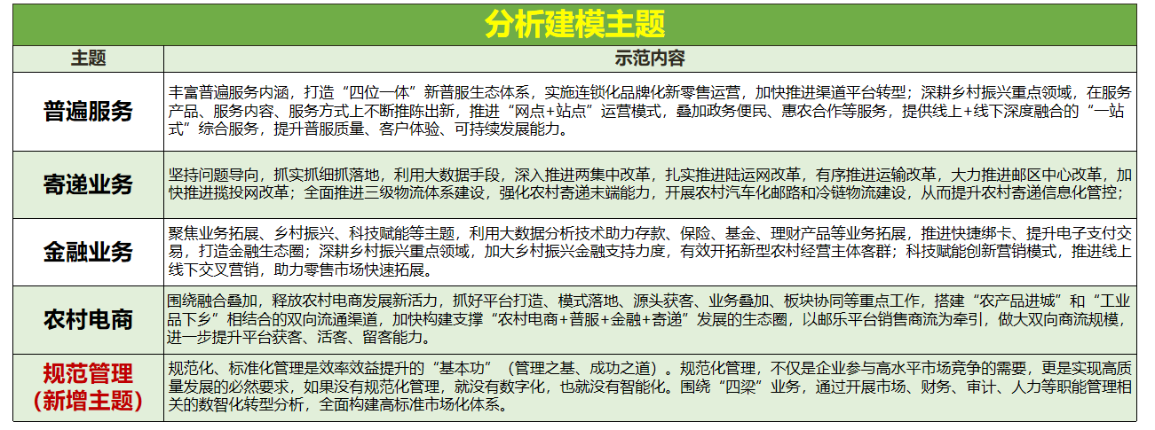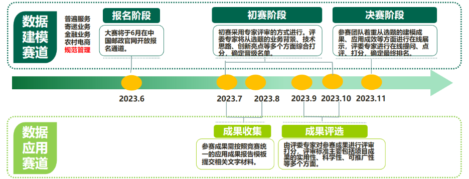 參賽團隊可圍繞大賽指定的“普遍服務、寄遞業(yè)務、金融業(yè)務、農村電商、規(guī)范管理”五大主題,結合業(yè)務實際需求,開展分析建模及拓展,并通過ppt、線上答辯方式介紹方案思路及建模流程。