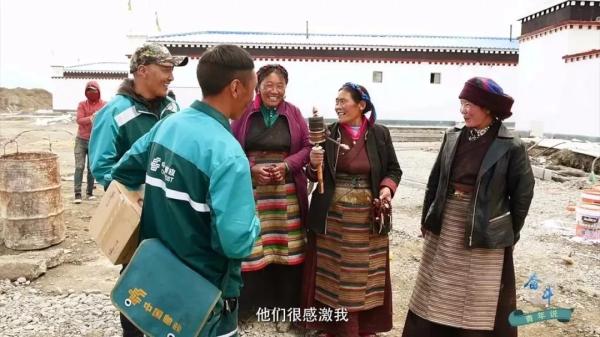 藏族阿媽排著隊等待領(lǐng)包裹,壯實的漢子來取網(wǎng)購的棉服,村委會主任迫不及待地翻看新到的報紙……