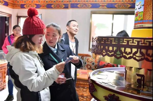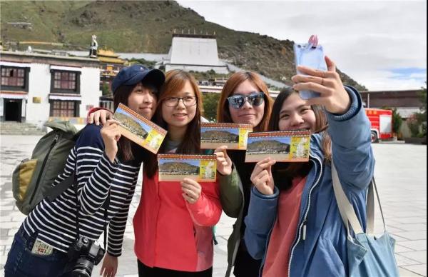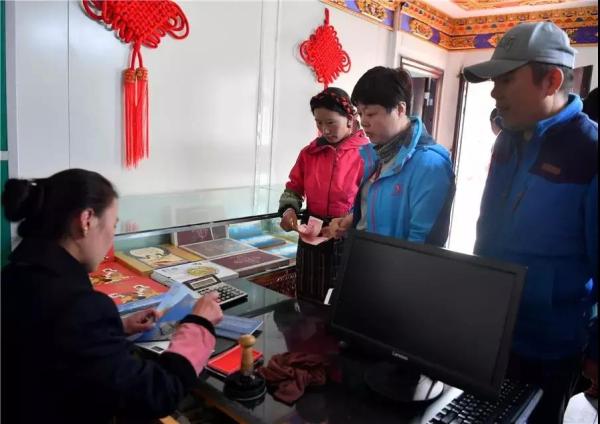 扎什倫布寺,來自香港的游客在展示中國(guó)郵政設(shè)計(jì)制作的景區(qū)門票。西藏郵政以深度融合西藏旅游文化、西藏民俗文化和郵政文化為核心,以郵政先進(jìn)的網(wǎng)絡(luò)、技術(shù)為支撐,服務(wù)景區(qū),服務(wù)游客,融入西藏旅游發(fā)展熱潮,助推西藏旅游經(jīng)濟(jì)的發(fā)展。