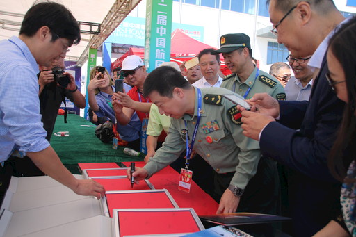 11月6日,第十二屆中國(guó)國(guó)際航空航天博覽會(huì)在珠海開幕,中國(guó)十大軍工企業(yè)首次大規(guī)模參展。開幕式后,中國(guó)進(jìn)入太空第一人、太空郵局局長(zhǎng)楊利偉來到二號(hào)館前的郵政服務(wù)點(diǎn),看望慰問現(xiàn)場(chǎng)的郵政服務(wù)人員,并在航空航天主題郵品上簽名。