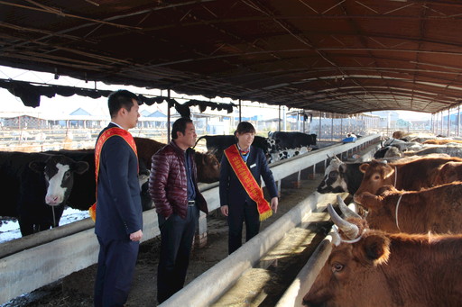 利津縣支行黨員來(lái)到鹽窩鎮(zhèn)鹽中村養(yǎng)牛場(chǎng)調(diào)查。