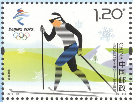 此次發(fā)行的《北京2022年冬奧會(huì)——雪上運(yùn)動(dòng)》紀(jì)念郵票一套4枚,為我國(guó)首套雪上運(yùn)動(dòng)郵票,分別表現(xiàn)了越野滑雪、高山滑雪、冬季兩項(xiàng)和自由式滑雪4個(gè)雪上運(yùn)動(dòng)項(xiàng)目。畫面中,滑雪運(yùn)動(dòng)員分別以水平線、同心圓、網(wǎng)點(diǎn)和放射線來表現(xiàn),體現(xiàn)出雪上運(yùn)動(dòng)項(xiàng)目的速度感、力量感和造型美感,富有透視感和精致簡(jiǎn)練的幾何形結(jié)構(gòu),描繪出雪上運(yùn)動(dòng)的特征與張力。郵票背景用流線型的波浪線和漸變的色帶把雪山、雪松和雪花等冬奧會(huì)的環(huán)境元素串聯(lián)起來,在動(dòng)態(tài)變化中體現(xiàn)出秩序美。在印制工藝上,特殊材料印制的雪花晶瑩剔透,郵票版張邊飾上的“BEIJING2022”字樣則采用鏤空工藝制作而成,集藝術(shù)和防偽功能于一體。郵票發(fā)行的同時(shí),中國(guó)郵政還推出首日封、紀(jì)念封、郵折、郵冊(cè)等系列郵品在各郵政網(wǎng)點(diǎn)銷售,部分商品還可在北京冬奧會(huì)特許商品官方網(wǎng)店(http://beijing2022.tmall.com)上訂購(gòu)。