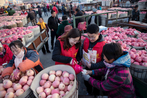 進(jìn)入生產(chǎn)旺季,山東省棲霞市郵政分公司機(jī)關(guān)各職能部門、專業(yè)部門黨員和入黨積極分子共20多人組成了機(jī)關(guān)黨員突擊隊(duì),他們身著“黨員志愿者”紅馬甲,活躍在蘋果收購(gòu)市場(chǎng)、街道小區(qū)、農(nóng)戶家中,支撐旺季業(yè)務(wù)發(fā)展,用實(shí)際行動(dòng)踐行了“一個(gè)黨員就是一面旗幟”的莊嚴(yán)承諾。圖為該分公司機(jī)關(guān)黨員突擊隊(duì)到蘋果收購(gòu)市場(chǎng),為果農(nóng)送上暖手、暖身、更暖心的熱水、熱豆?jié){、熱雞蛋、勞保手套,幫助果農(nóng)抬蘋果,并提醒他們“蘋果款要及時(shí)存到正規(guī)銀行,以防被偷盜、被詐騙”。 □張紅霞 唐子清 攝影報(bào)道