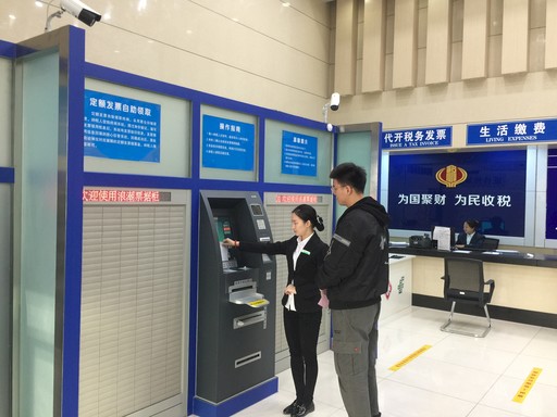 四平市鐵西郵政支局是全市客流量最大的網(wǎng)點(diǎn),走進(jìn)廳堂,最吸引眼球的便是廳堂內(nèi)設(shè)置的5臺(tái)自助報(bào)稅設(shè)備,四平市郵政分公司引進(jìn)了智能自助設(shè)備,開啟了“智慧稅務(wù)”的新篇章?!皠傞_始我們粘貼了‘傻瓜式’操作流程引導(dǎo)圖,但自助機(jī)的利用率依然不高,我就成了納稅人的自助顧問,所有廳堂的業(yè)務(wù),我都能解決?!辫F西支局大堂經(jīng)理張爽說。納稅人通過自助設(shè)備從申請(qǐng)代開發(fā)票到一張發(fā)票拿到手僅需要短短的兩分鐘時(shí)間,與人工辦理發(fā)票代開相比,效率提高數(shù)倍。
