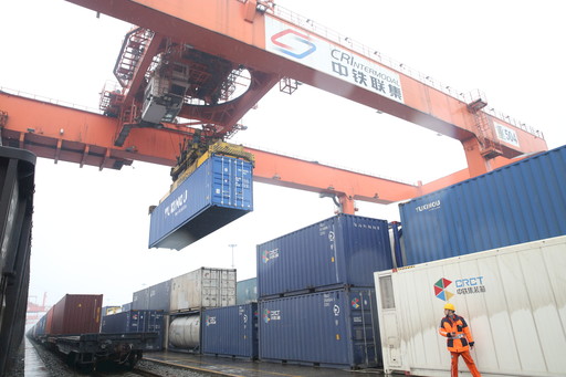 運郵集裝箱進入中國郵政重慶國際郵件互換局鐵路口岸中心。