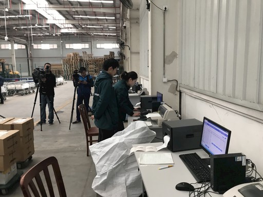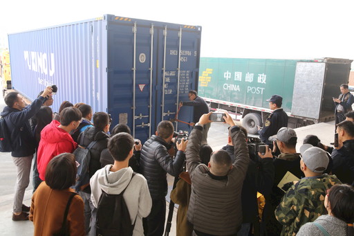在海關(guān)工作人員及眾多媒體的見證下,運郵集裝箱開箱。