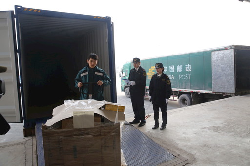 重慶郵政在海關(guān)監(jiān)管下取出進口測試郵件。