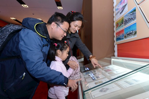 年輕的符浩并沒有過多關(guān)注展板,而是仔細地逐一觀賞展柜內(nèi)的郵票實物?!俺恕褡宕髨F結(jié)’,還有一套枚數(shù)相對較多的,《紅樓夢——金陵十二釵》郵票我已收藏;1997年《香港回歸祖國》的金箔小型張沒有收錄在年冊中,我買了很久都沒有買到;1999年《澳門回歸祖國》的金箔小型張年冊中就收錄了?!痹谵r(nóng)業(yè)銀行總行工作的符浩還有一個身份——長大的“小集郵愛好者”,他在福建省南平市紫云小學(xué)讀書時就接受了系統(tǒng)的集郵課程教育?!半m然因為求學(xué)、工作,有一段時間沒有接觸郵票了,但集郵教育對我影響很大?!狈迫匀粵]有忘記自己集郵的初心。