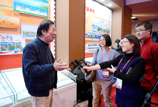 一說(shuō)到郵票,兩位老者的話匣子就打開(kāi)了?!班]票作為‘國(guó)家名片’,意義非常重大,但設(shè)計(jì)難度也大,一般來(lái)說(shuō),藝術(shù)家喜歡揮灑,喜歡在創(chuàng)作中發(fā)揮自己的想象力,但恰恰郵票設(shè)計(jì)具有嚴(yán)謹(jǐn)?shù)目茖W(xué)性?!痹S仁龍介紹,在《長(zhǎng)城》郵票中,地理方位一點(diǎn)都不能馬虎,長(zhǎng)城的敵樓上有幾個(gè)射箭孔都要有出處、有講究;此外,郵票設(shè)計(jì)還要進(jìn)行嚴(yán)謹(jǐn)?shù)臍v史考證,長(zhǎng)城綿延一萬(wàn)多公里,經(jīng)過(guò)那么多省、市,沿途取景就需要仔細(xì)推敲,聽(tīng)取專家意見(jiàn),最終還要畫成一個(gè)藝術(shù)作品?!霸谠O(shè)計(jì)郵票時(shí)要充分體現(xiàn)藝術(shù)巧妙的融合性,要突破時(shí)空,令人有身臨其境之感,這又是一個(gè)難點(diǎn)?!睍r(shí)隔兩年,許仁龍回憶起郵票創(chuàng)作過(guò)程還是感受頗多,“長(zhǎng)城是改革開(kāi)放的一種精神象征,中國(guó)郵政將它繪制成郵票長(zhǎng)卷是一種突破?,F(xiàn)在,這套郵票長(zhǎng)卷在‘偉大的變革’展覽中展出,我深感榮耀和自豪,在此也要感謝改革開(kāi)放給我們藝術(shù)創(chuàng)作帶來(lái)的新氣象。”