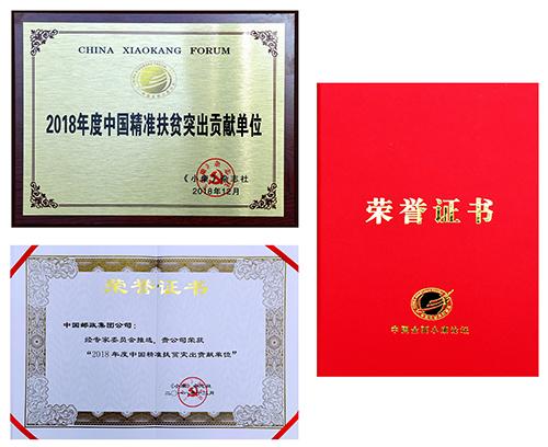 12月15日,由中國扶貧開發(fā)協(xié)會、國家信息中心、求是《小康》雜志社聯(lián)合主辦,以“高質(zhì)量發(fā)展與決勝全面小康”為主題的2018第十三屆中國全面小康論壇在北京舉行。中國郵政集團公司榮獲“2018年度中國精準(zhǔn)扶貧突出貢獻單位”。