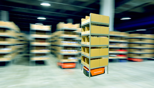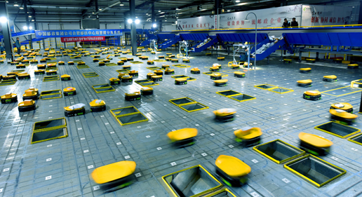 該中心內(nèi)的智能AGV機(jī)器人正在作業(yè)。
