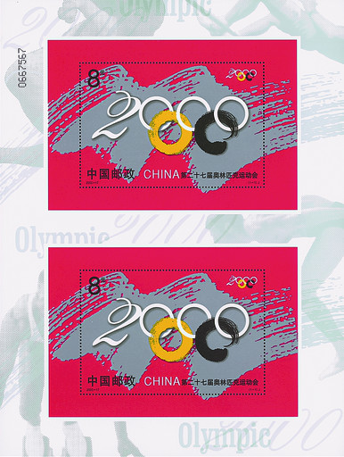 第27屆奧林匹克運動會于2000年9月15日~10月1日在澳大利亞悉尼舉行。中國共奪得28枚金牌,名列參賽國第三名,成為中國邁向世界體育強國征程中的一座里程碑。當年9月15日中國郵政發(fā)行《第二十七屆奧林匹克運動會》紀念郵票小型張1枚,圖案為藝術化的奧運旗幟,五環(huán)與“2000”巧妙組合,同時還首次發(fā)行了小型張雙連張。