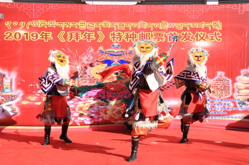 1月10日,“歡歡”“喜喜”身著藏裝亮相拉薩市布達拉宮腳下的“天上西藏”郵局門前,西藏自治區(qū)郵政分公司在這里舉辦《拜年》郵票首發(fā)暨專家簽售活動,數百名來自全國各地的集郵愛好者現場制作并寄出郵品,共同感受西藏年俗文化。據悉,今年藏歷新年與農歷新年恰逢同一天,該套郵票的發(fā)行既是中國郵政弘揚中華民族傳統(tǒng)節(jié)日的具體體現,也是宣傳和推介地方特色文化資源、助推地方經濟社會發(fā)展的重要舉措?! 跞试鼍S色 李峰 攝影報道
