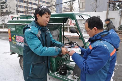 瑞雪兆豐年。1月中旬,一場(chǎng)大雪覆蓋了整個(gè)河南澠池。雨雪天氣里,道路濕滑難行,給百姓生活帶來不便。盡管這樣,澠池縣郵政分公司的投遞員們肩負(fù)著郵政普遍服務(wù)的職責(zé),踐行著“情系萬家 信達(dá)天下”的使命,他們不畏嚴(yán)寒,在風(fēng)雪中堅(jiān)守崗位,將郵件和報(bào)刊送至千家萬戶。圖為投遞員姜波在風(fēng)雪中投遞,將包裹及時(shí)送交給收件人。 □田丹丹 攝影報(bào)道