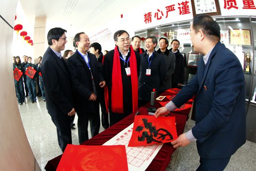 劉愛力觀看北京機要通信局員工書寫“福”字,為大家送上新春祝福