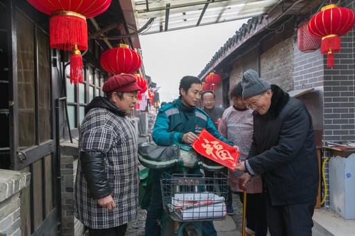 “老爹,先向您拜個(gè)早年呀,我把對聯(lián)和‘?!侄紟砹?,貼在哪里您告訴我!”2月4日,江蘇省如皋市郵政分公司城區(qū)投遞部投遞員陳志勇對季保余老人說。每年大年三十,陳志勇都會在老街投遞的同時(shí),給巷子里的街坊鄰居送“?!辟N“?!?,這是他堅(jiān)持了14年的習(xí)慣?!巴哆f員,巷子,綠制服、紅燈籠,每年大年三十有了這些,我才覺得真是過年了!”接過“福”字的季保余說?! 鮿?nbsp; 徐慧 攝影報(bào)道