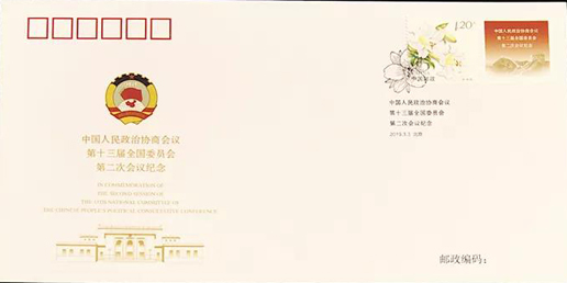 3月2日19時整,《中國人民政治協(xié)商會議第十三屆全國委員會第二次會議》紀(jì)念封正式發(fā)售。