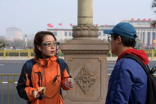 戴上直播眼鏡的長城新媒體耿佳成為“網(wǎng)紅”記者