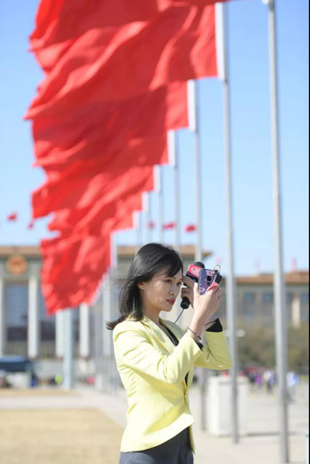 一說起添彩,還有今天報(bào)道會(huì)議開幕的女主持人、女記者,站在天安門廣場(chǎng)上,口播新聞,一遍一遍,只為了以最佳的姿態(tài)、最好的面貌出現(xiàn)在觀眾面前。