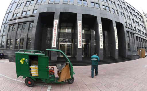 郵政快遞小哥來到共青團中央等部門投送郵件。李旭昌 李巍 攝