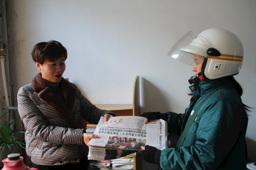 全國兩會期間,為方便廣大用戶和人民群眾更好地了解兩會消息,山東省茌平縣郵政分公司城區(qū)投遞部投遞員徐紅,每天早早地就等候在投遞部,報紙一分揀完畢,她便騎上車出發(fā)投遞?!澳銈儊淼谜婕皶r,我這就把報紙分發(fā)下去?!避萜娇h委黨校傳達(dá)室的工作人員如是說。據(jù)了解,兩會期間,徐紅每天投遞《人民日報》等黨報100余份?!鯊埮喾f 攝影報道