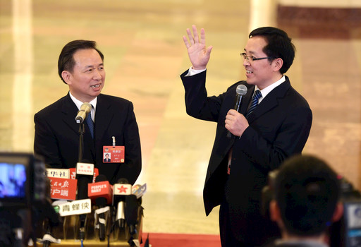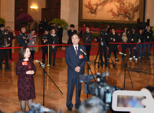 今年全國(guó)政協(xié)會(huì)議共舉辦了三次“委員通道”集體采訪活動(dòng),圖為全國(guó)政協(xié)委員劉月寧(左)、馮鞏(右)在“委員通道”接受采訪。