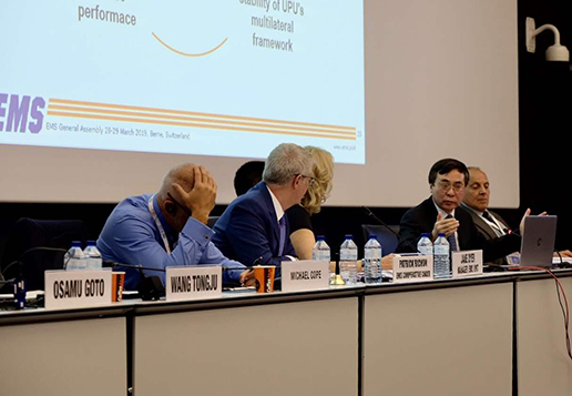 劉愛力董事長在萬國郵聯(lián)EMS合作機(jī)構(gòu)全體大會(huì)上做主旨演講