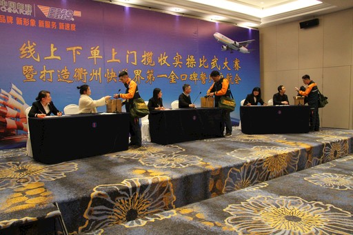 3月31日晚,浙江省衢州市郵政分公司舉行全市線上下單上門攬收實(shí)操比武大賽暨打造衢州快遞界第一金口碑誓師啟航會(huì)。各縣(市)寄遞事業(yè)部、市本級(jí)各綜合營業(yè)部共組成10支代表隊(duì),每支參賽隊(duì)由3名攬投員組成。各參賽隊(duì)根據(jù)比賽要求,結(jié)合工作實(shí)際,展示了攬投人員在操作技能、服務(wù)用語、禮儀規(guī)范等方面的能力與素養(yǎng)?!躐T君 攝影報(bào)道