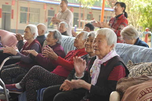 臺(tái)上充滿青春活力的歌舞,與臺(tái)下老人們的笑聲、掌聲,顯得那么和諧。