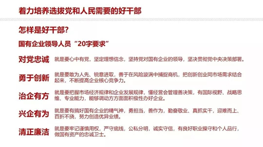 在全國國有企業(yè)黨的建設(shè)工作會議上,習近平總書記對國有企業(yè)領(lǐng)導人員提出了對黨忠誠、勇于創(chuàng)新、治企有方、興企有為、清正廉潔的“20字要求”。劉愛力在領(lǐng)學時表示,中國郵政將習近平總書記對國有企業(yè)領(lǐng)導人員的“20字要求”作為選拔干部、培養(yǎng)干部、考核干部的根本遵循,嚴格貫徹執(zhí)行《黨政領(lǐng)導干部選拔任用工作條例》,堅持好干部標準,把政治標準放在第一位。