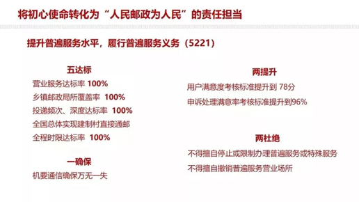 自1998年郵電分營以來,中國郵政取得巨大成就,但是,新時代黨和國家對中國郵政提出了新的要求,必須將“不忘初心、牢記使命”轉(zhuǎn)化為新時代郵政的責任擔當?!叭嗣襦]政為人民”,滿足人民群眾日益增長的美好用郵需求,就是踐行“為人民謀幸?!钡闹袊]政責任所在。