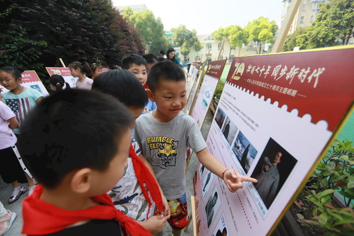 郵展參觀結(jié)束后,共青團(tuán)路小學(xué)近300名學(xué)生在老師的指導(dǎo)下,分班級(jí)將自己書寫的“致敬共和國(guó)英雄”書信(畫信)投進(jìn)郵筒,向祖國(guó)母親70華誕獻(xiàn)上“紅領(lǐng)巾們”的崇高敬禮。