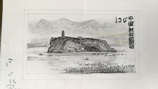 《鄱陽(yáng)湖》郵票設(shè)計(jì)草圖。