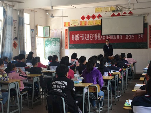 揚(yáng)眉鎮(zhèn)支行員工進(jìn)校園為學(xué)子送去金融知識(shí)。