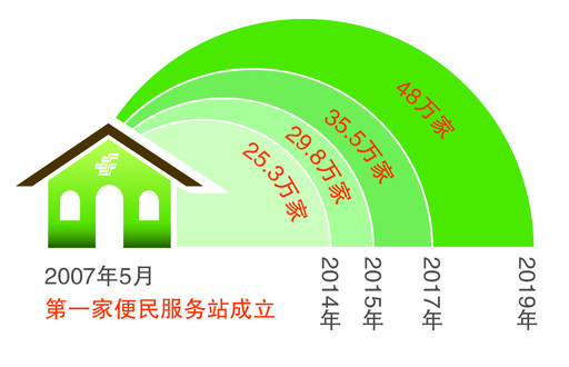 便民服務(wù)站是中國郵政利用互聯(lián)網(wǎng)技術(shù)創(chuàng)建服務(wù)民生的重要平臺。它以較低的成本,將郵政業(yè)務(wù)方便、快捷地延伸到社會各個角落;為百姓提供繳費、票務(wù)、報刊等家門口的便捷多功能服務(wù)。2007年5月,第一家中國郵政便民服務(wù)站在福建設(shè)立。經(jīng)過十幾年的發(fā)展、建設(shè),目前已達48萬家,樹立起了“中國郵政便民服務(wù)”的品牌。
