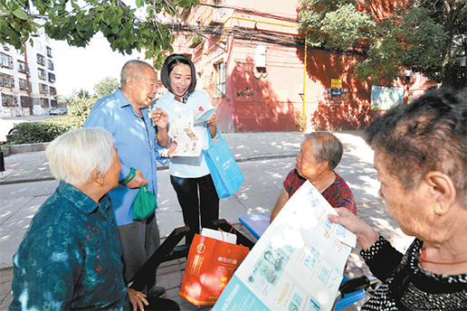 入小區(qū)宣傳新版人民幣。