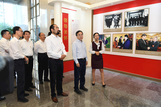 集團(tuán)公司領(lǐng)導(dǎo)與“時(shí)代楷?!?、全國(guó)道德模范其美多吉一同觀展。記者 朱正義 攝