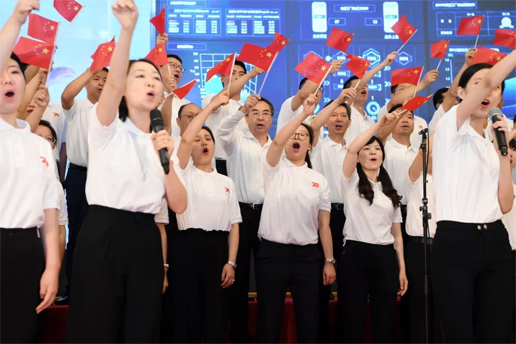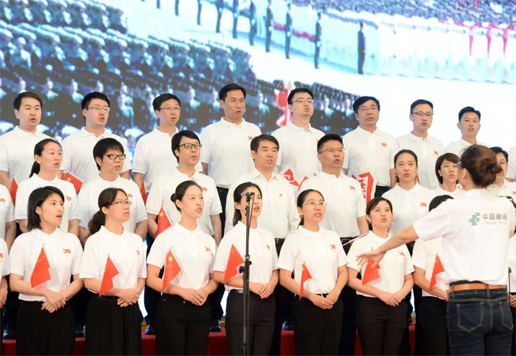 升旗儀式后,來自集團公司各部門(含派駐紀(jì)檢組)、郵儲銀行、寄遞事業(yè)部、中郵保險、中郵資本、電商分銷局、信息科技公司等20個部門(單位)的員工舉行了“歌唱祖國”合唱活動,傾情演唱了13首祖國頌歌。劉愛力隨辦公廳、黨建工作部演唱方隊來到舞臺中央,與員工們高歌“我和我的祖國”。李丕征參加了人力資源部、集團工會組成的演唱方隊,合唱歌曲《中國 中國 鮮紅的太陽永不落》。康寧加入郵政業(yè)務(wù)部、金融業(yè)務(wù)部、電商分銷局組成的演唱方隊,合唱歌曲《歌唱祖國》。