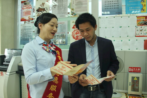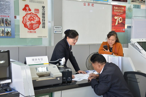 顧朝竹悉心為客戶辦理財產品購買登記手續(xù)。