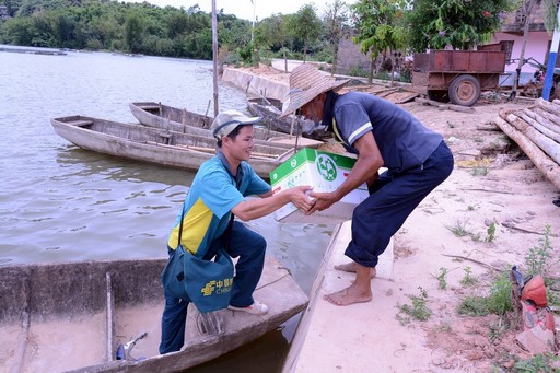 一次恰逢臺風(fēng)天,有份藥品急件從廣東寄回當(dāng)?shù)刈钇h(yuǎn)的大崇村,收件人是常年體弱多病的王老伯。望著烏云密布的天空,韋仕標(biāo)沒有多想便騎著摩托車趕至江邊,撐起船槳搖擺至大崇村,只為了早一點將藥品送給王老伯。