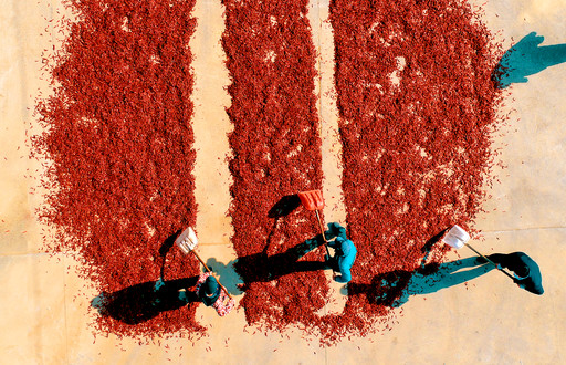 除了銀杏,辣椒市場(chǎng)也給郵政業(yè)務(wù)拓展帶來(lái)了新的機(jī)遇。這不,紅火的晾曬場(chǎng)上也有綠衣人幫扶的身影。