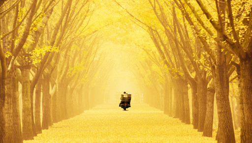 銀杏時(shí)光隧道一抹郵政綠,成了這里最美麗的風(fēng)景。