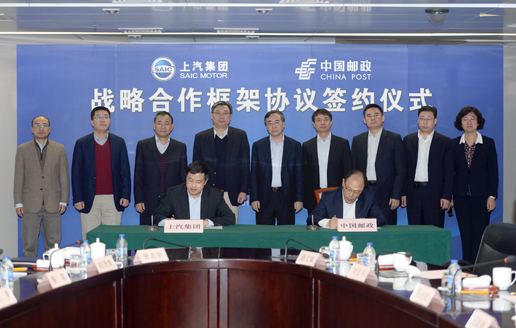 12月9日,中國郵政集團公司在上海與上海汽車集團股份有限公司(以下簡稱上汽集團)簽署戰(zhàn)略合作框架協(xié)議。中國郵政集團公司董事長劉愛力、副總經(jīng)理康寧,上汽集團董事長陳虹、總裁王曉秋、副總裁藍青松等出席??祵?、藍青松分別代表雙方簽署協(xié)議。