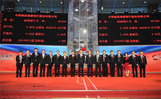 今日,中國郵政儲蓄銀行又迎來改革發(fā)展史上一個重要的里程碑,中國郵政儲蓄銀行A股股票(證券簡稱“郵儲銀行”,證券代碼“601658”)正式在上海證券交易所上市,標(biāo)志著國有大型商業(yè)銀行“A+H”兩地上市完成收官。據(jù)悉,郵儲銀行此次A股發(fā)行價格為5.50元/股,“綠鞋”前募資金額為284.5億元,“綠鞋”后預(yù)計為327.1億元。