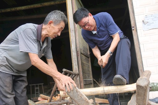 陳澤維幫助貧困戶鋸柴火。李蓉 攝