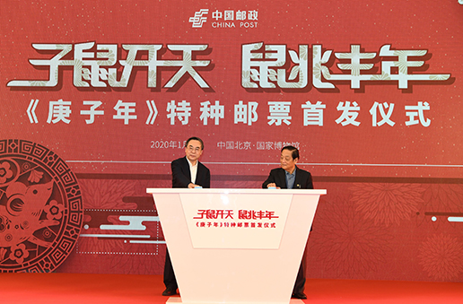 1月5日,《庚子年》特種郵票首發(fā)儀式在中國國家博物館舉行。該套郵票設(shè)計者、著名藝術(shù)家韓美林,中國郵政集團(tuán)有限公司董事長劉愛力、國家博物館館長王春法等出席儀式。劉愛力與韓美林共同為《庚子年》特種郵票揭幕。
