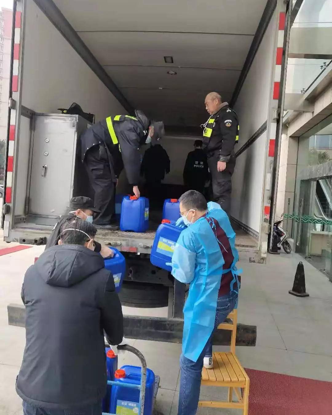 科技公司已經(jīng)下班,只留下2名員工,阜寧郵政的4名員工就成了主力,大家一起努力,花了3個(gè)小時(shí)總算將500箱10噸消毒液和一些醫(yī)護(hù)用品裝上了車。